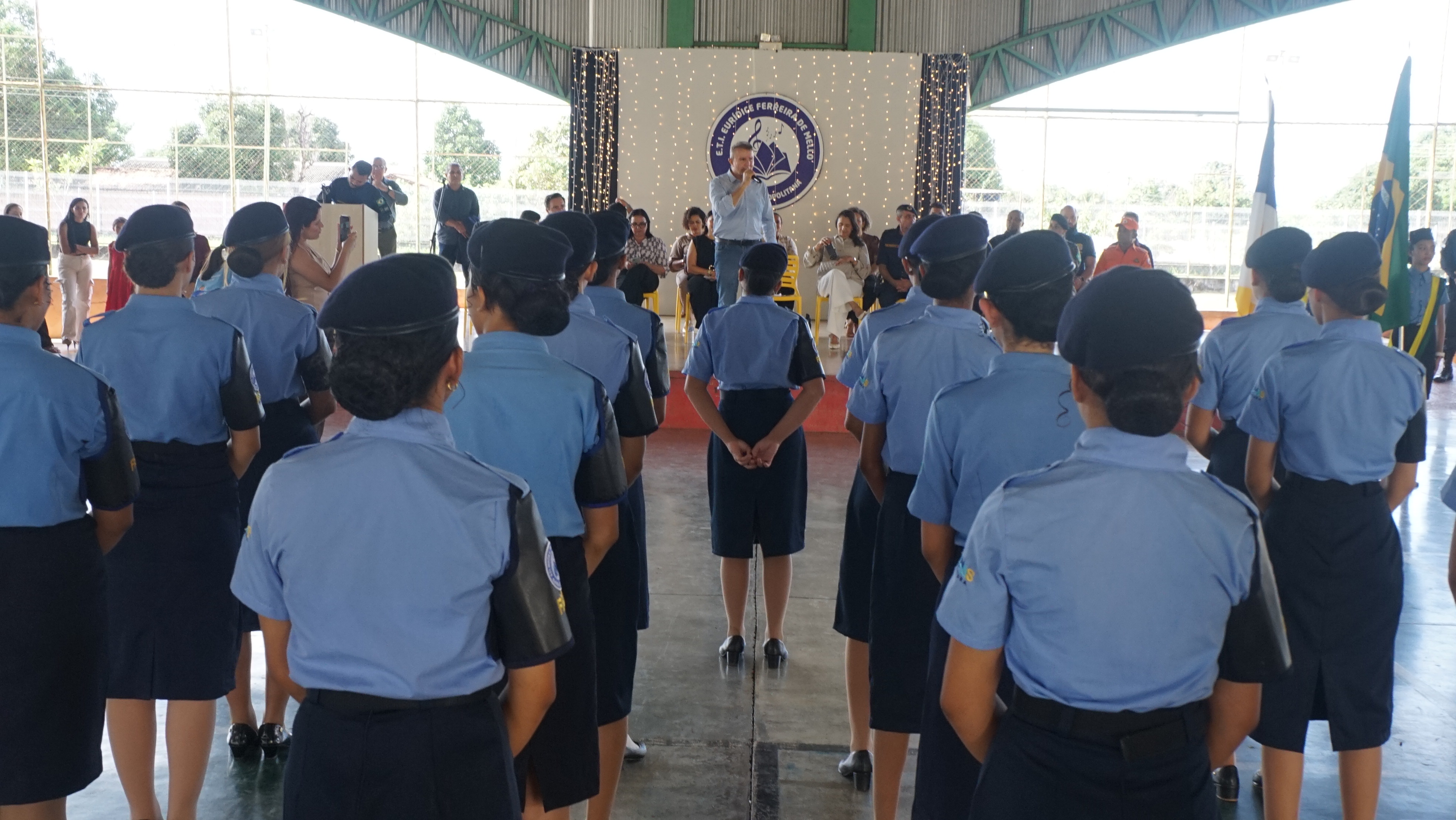 A Escola de Tempo Integral (ETI) Eurídice Ferreira, no setor Jardim Aureny III, em Palmas, realizou, na tarde desta sexta-feira, 13, a formatura da Turma de Alunas Fiscais 2026. A cerimônia aconteceu na quadra poliesportiva da unidade e reuniu familiares, comunidade escolar e autoridades municipais para celebrar a conquista das estudantes que concluíram o curso de formação. Ao todo, 22 estudantes, todas meninas, concluíram o curso e receberam oficialmente o título de alunas fiscais. A cerimônia foi marcada por momentos de emoção e orgulho para as formandas e seus familiares.