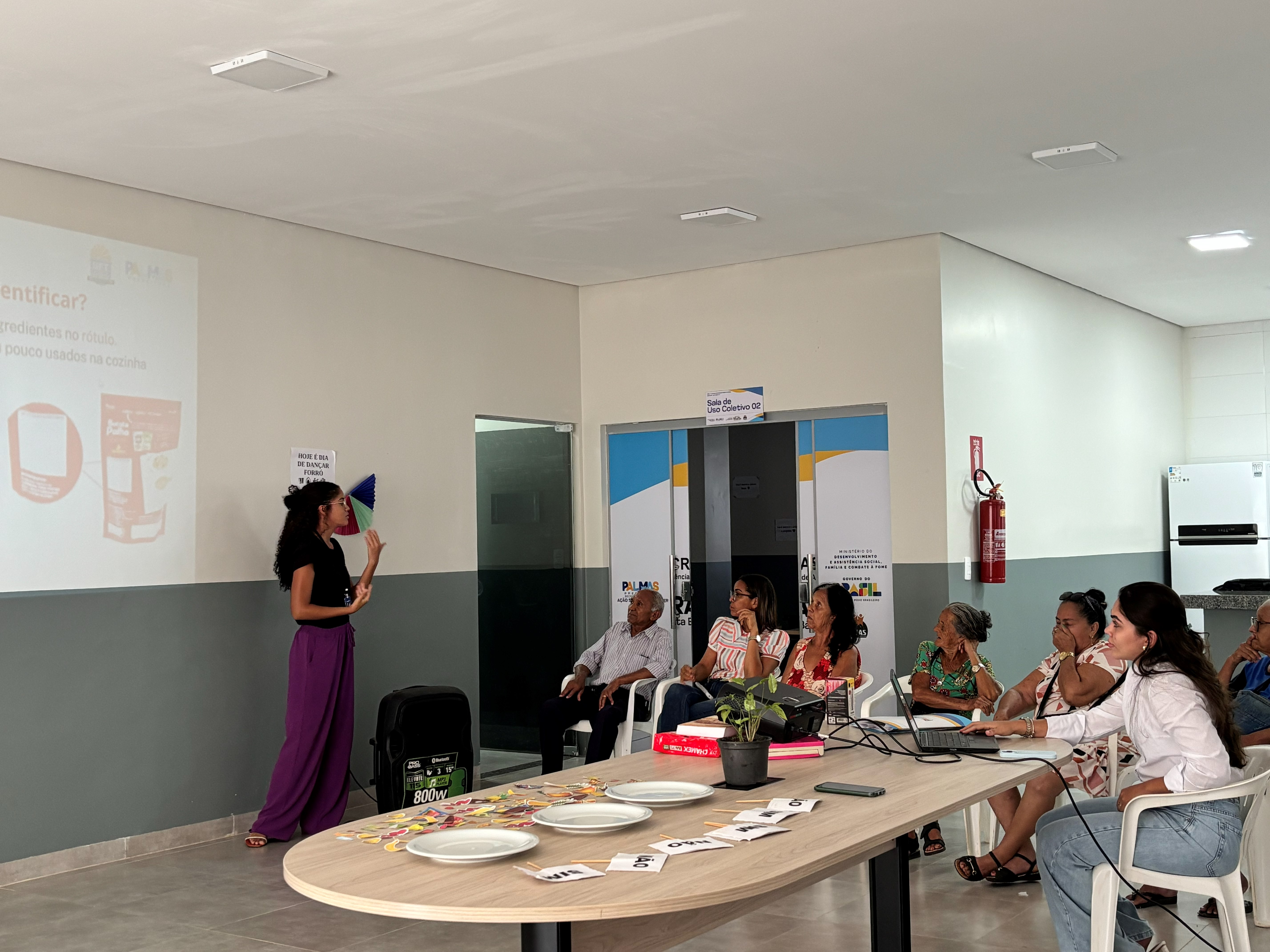 Para promover interação e orientar sobre hábitos saudáveis, a Prefeitura de Palmas, por meio da Secretaria Municipal de Desenvolvimento Social (Sedes), realizou na quinta-feira, 16, uma ação de segurança alimentar no Centro de Referência de Assistência Social (Cras) Karajá II, no setor Santa Bárbara. Na ocasião, foi ministrada, ao grupo de convivência de pessoas idosas, uma oficina de educação alimentar e nutricional sobre alimentação saudável com base no Guia Alimentar da População Brasileira.