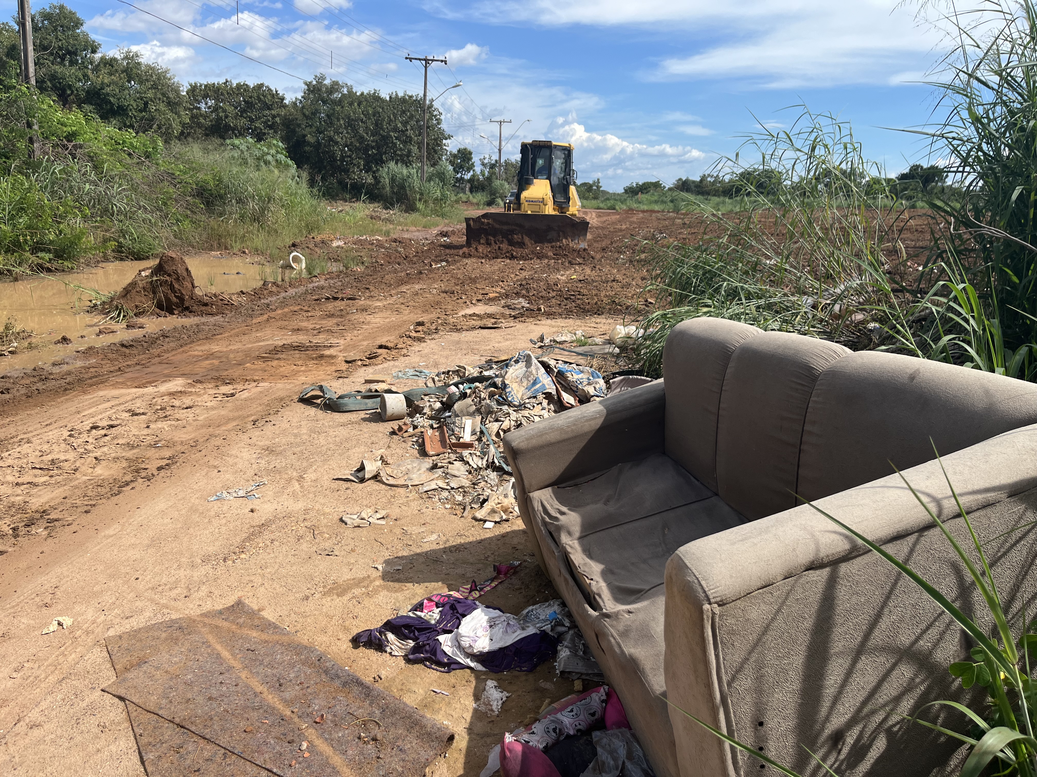 Durante o trabalho, as equipes encontraram grandes volumes de lixo acumulado, formando verdadeiras montanhas de entulho às margens da via. Entre os materiais recolhidos estavam restos de materiais de construção, eletrodomésticos descartados, móveis, como sofás e partes de armários, além de uma grande quantidade de pneus de veículos empilhados no local.