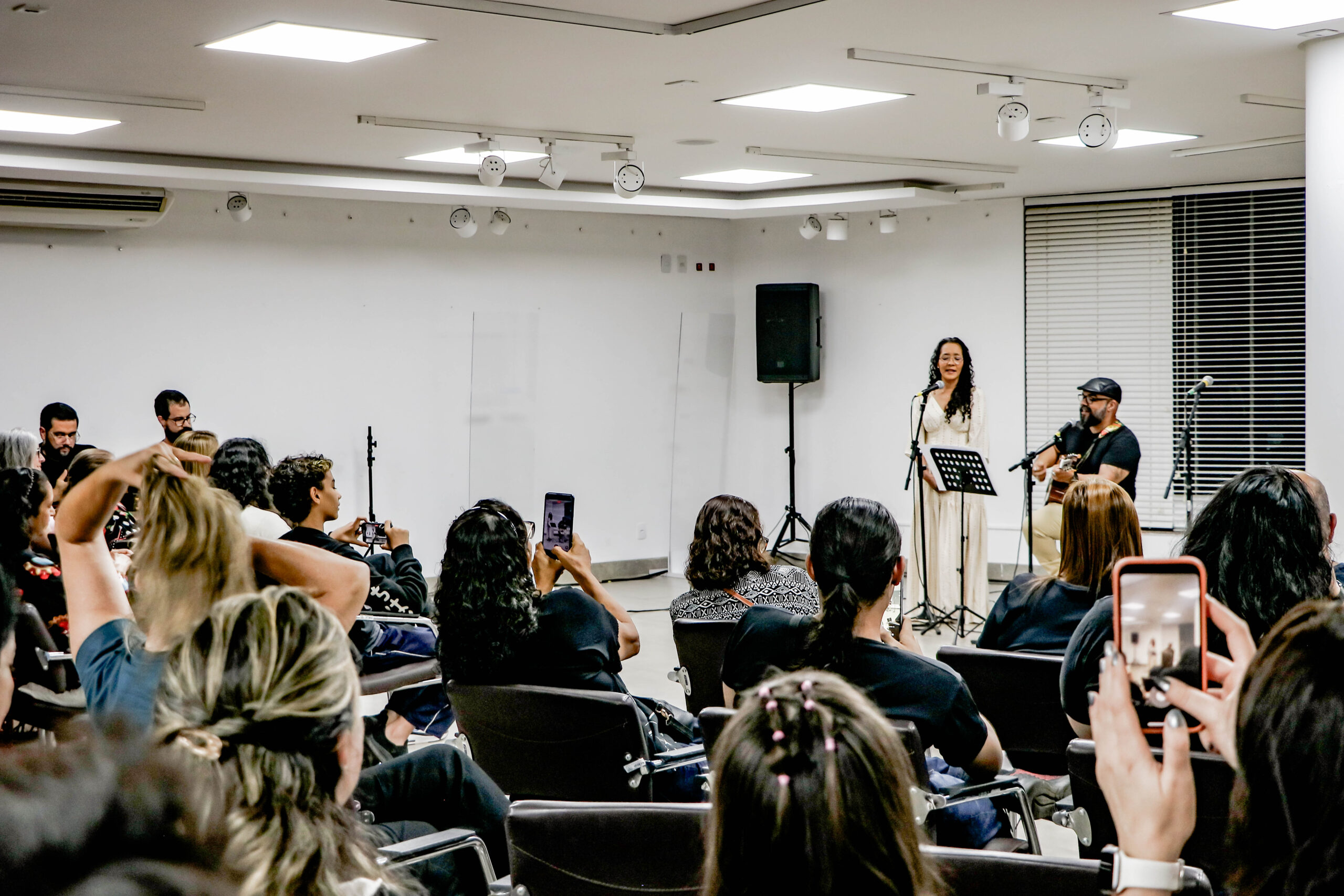 Além das apresentações teatrais, os alunos de canto popular também subiram ao palco, interpretando clássicos de Maria Bethânia e Tim Maia. O curso, que conta com um grande número de participantes, terá apresentações ao longo de toda a semana.