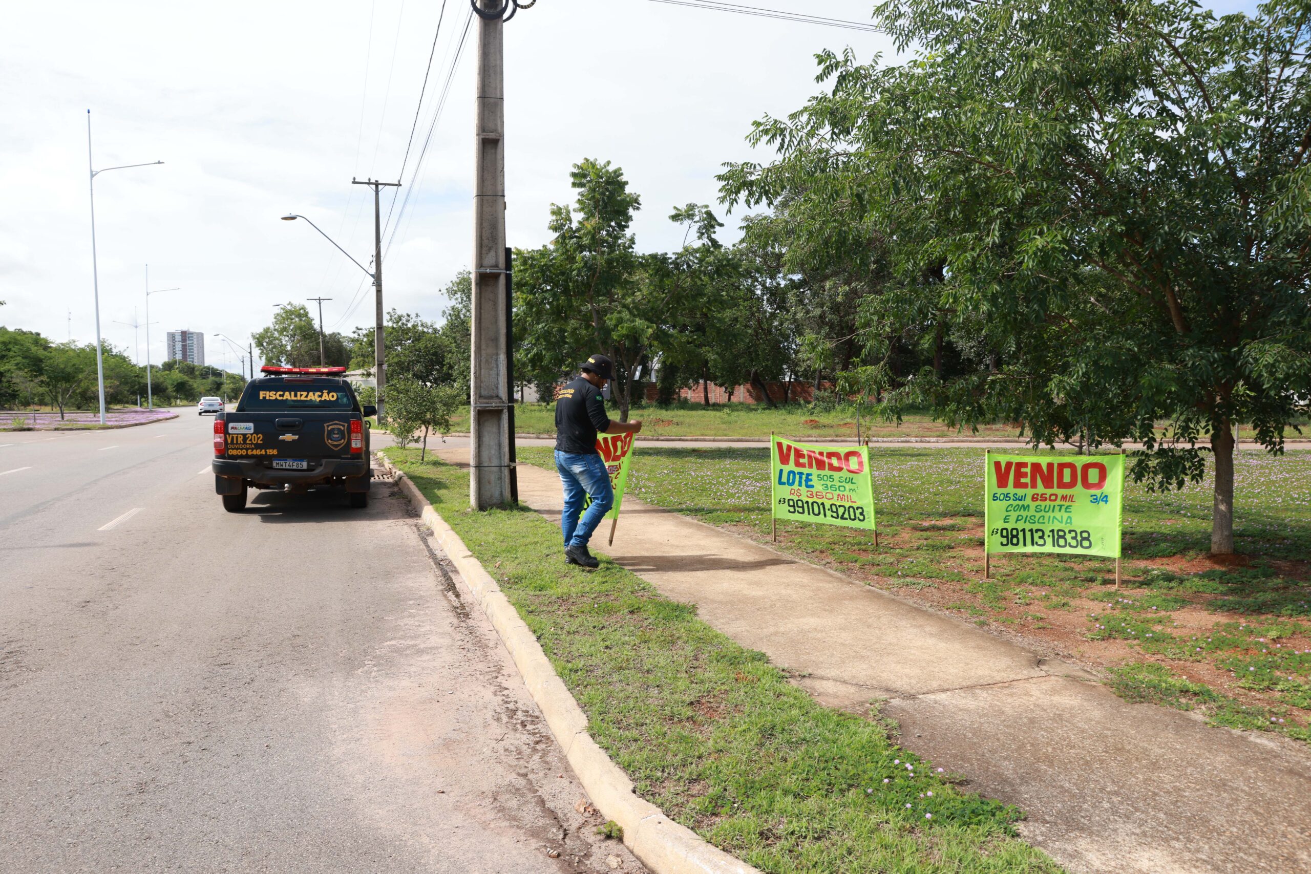 Os fiscais de Obras e Posturas intensificaram os trabalhos de remoção de faixas e placas publicitárias instaladas irregularmente em áreas públicas na Capital. Além de prejudicarem a estética da cidade, podem dificultar a visibilidade dos condutores, pedestres e ciclistas no trânsito. Essa é uma ação da Secretaria Municipal de Desenvolvimento Urbano e Regularização Fundiária, que vem trabalhando concomitantemente com outras pastas para fazer uma limpeza na cidade, a exemplo da Operação Palmas Cidade Limpa, que tem levado serviços da Secretaria Municipal de Zeladoria Urbana às várias regiões da Capital.