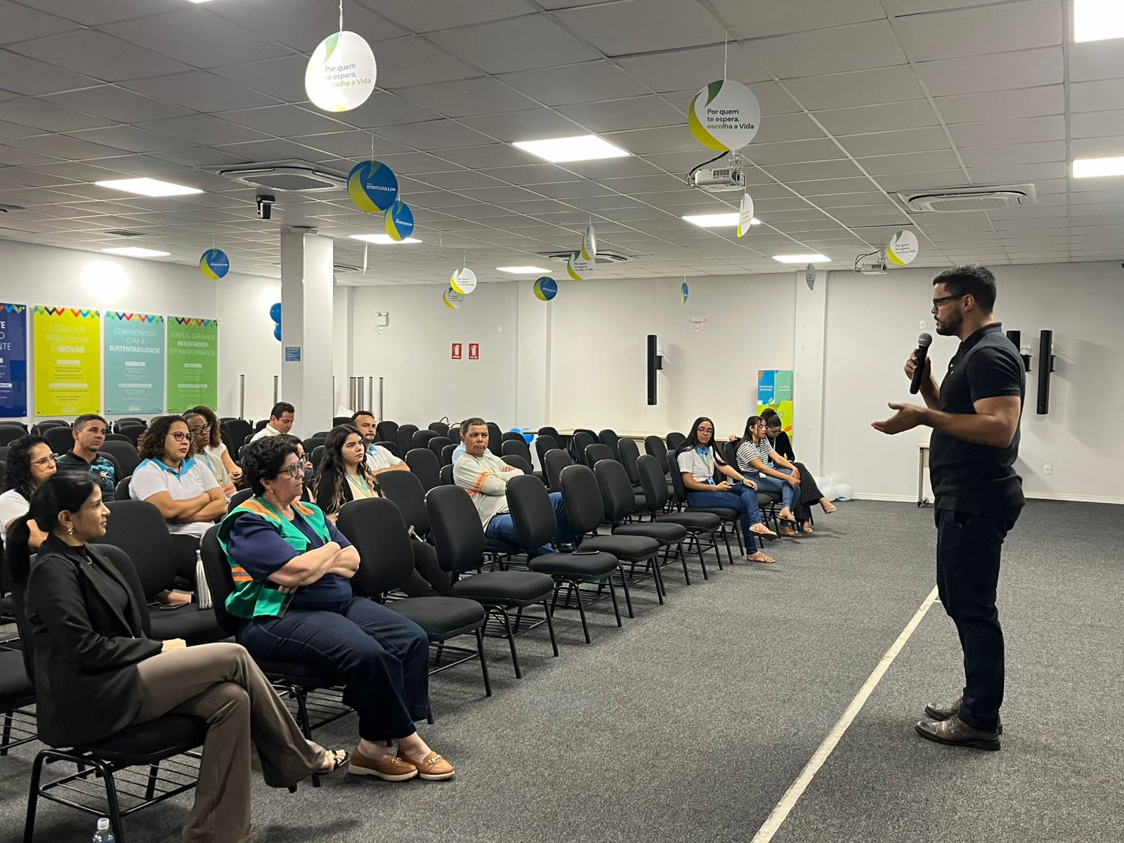 Na manhã desta quarta-feira, 3, a Prefeitura de Palmas, por meio da Secretaria Extraordinária da Igualdade Racial e Direitos Humanos (Seirdh), realizou a palestra “Respeito que une, diversidade que fortalece” para trabalhadores da Energisa Tocantins. A atividade integra a Semana Interna de Prevenção a Acidentes de Trabalho (Sipat), promovida pela empresa. O titular da Seirdh, José Eduardo de Azevedo, conduziu a atividade, que contou com a colaboração da servidora da Seirdh Wanda Citó e do coordenador do Projeto África em Nós, Aires Panda.